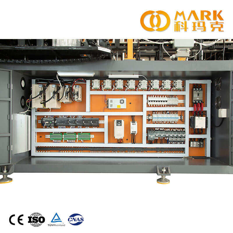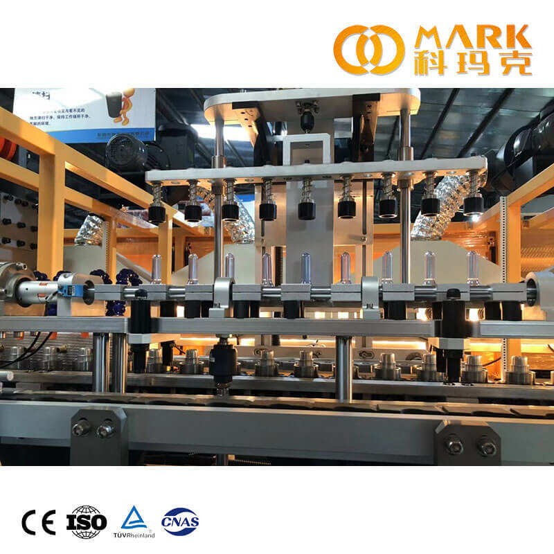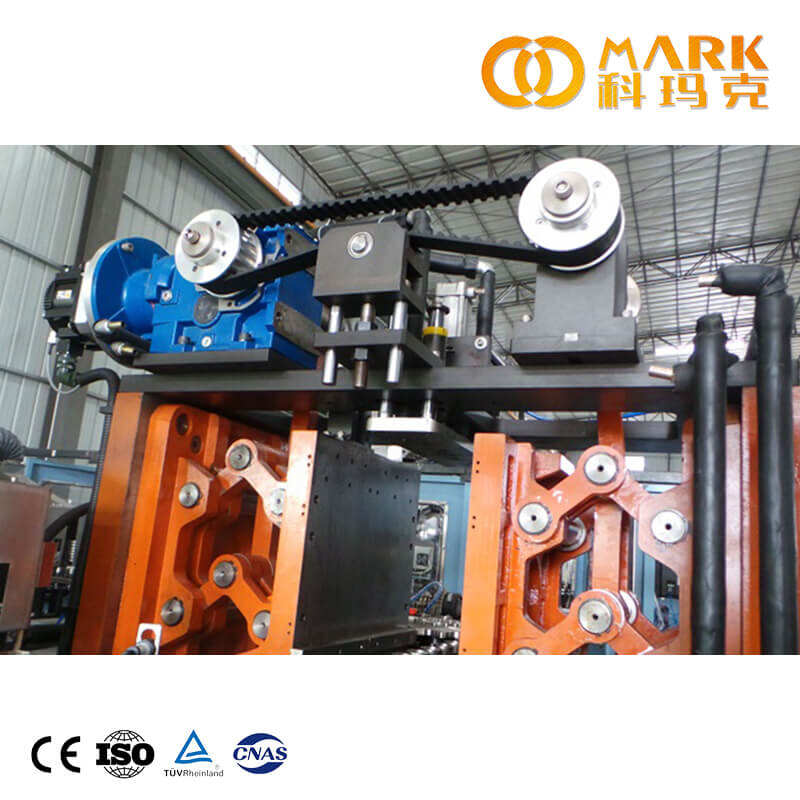 The stretching rods are driven by a servo motor all at once, which ensures the synchronicity of the motion of the rods and makes it easier to do adjustment prior to production. (After interchanging the blow mould, makes it much easier to adjust the height of stretching rods, just need to input the data on the touch screen, no need to do the adjustment by manual.